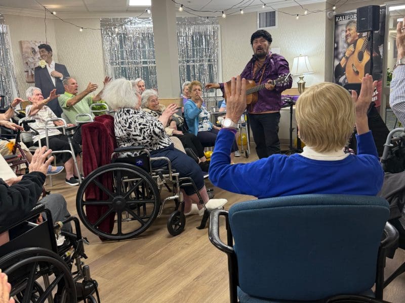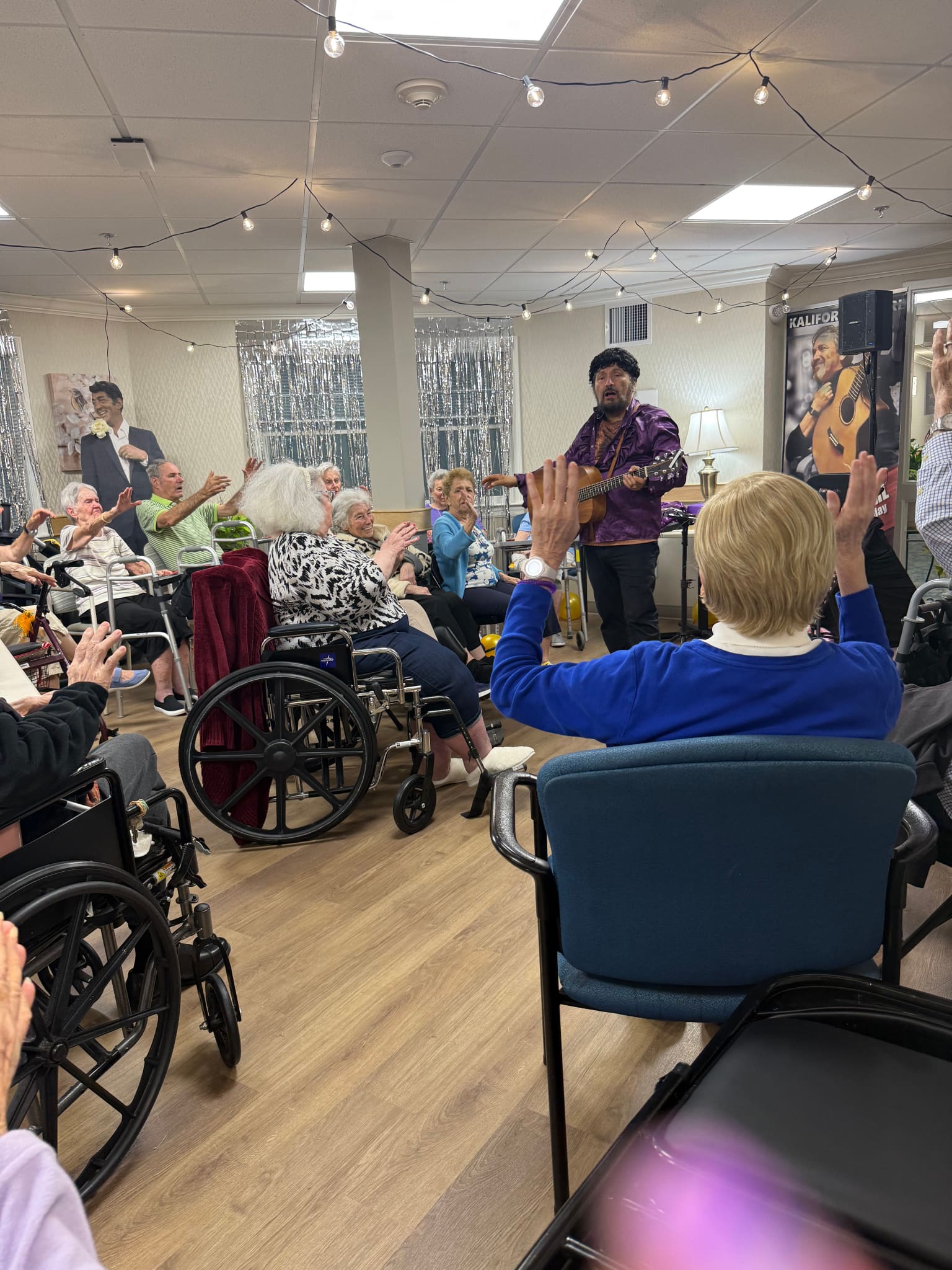 The evening was filled with timeless music as he performed classics from Tom Jones, Engelbert Humperdinck, Tony Orlando, Neil Diamond, Elton John, and the Bee Gees. Residents enjoyed light refreshments, great company, and the perfect atmosphere to close out summer under the stars.