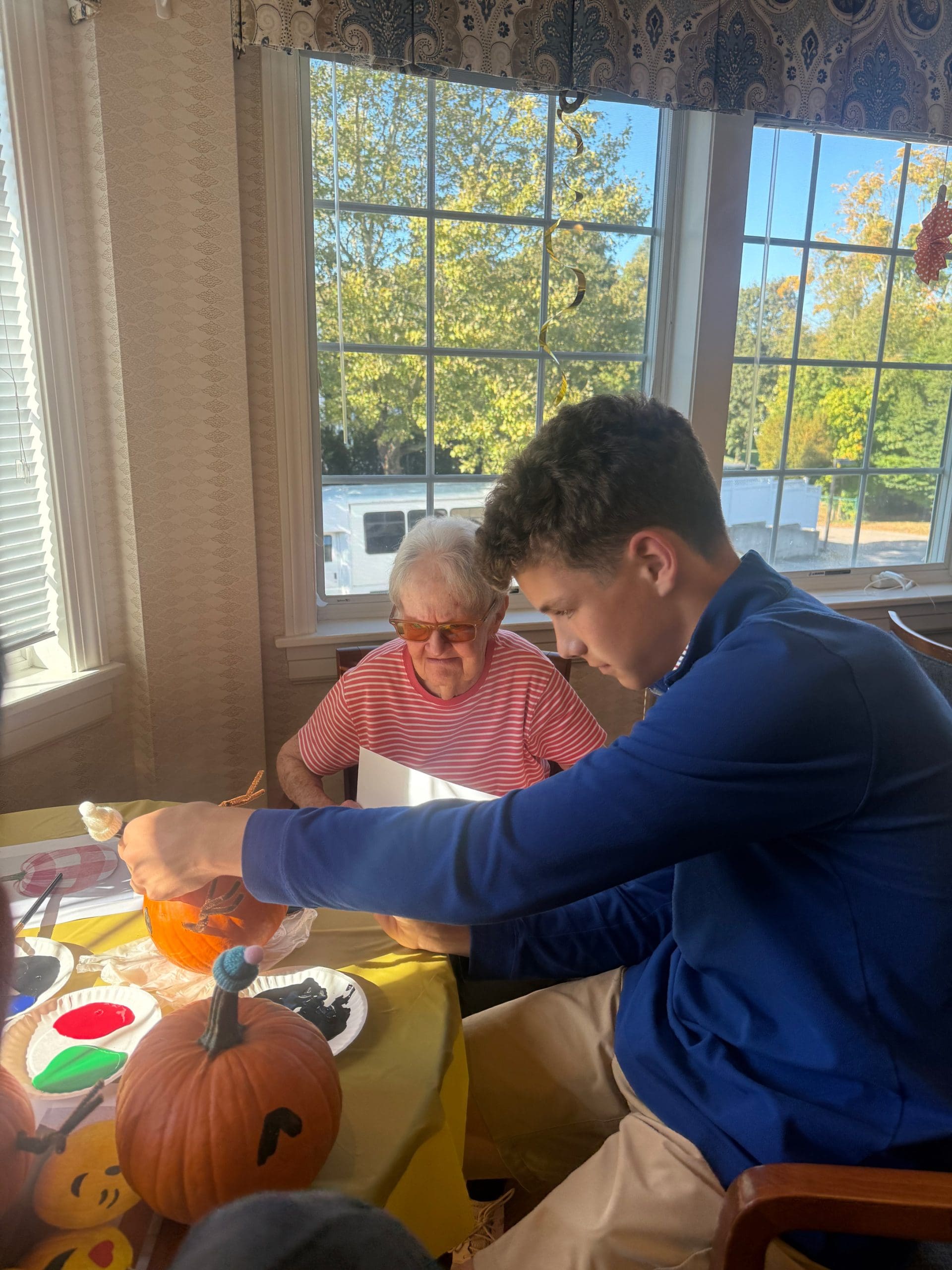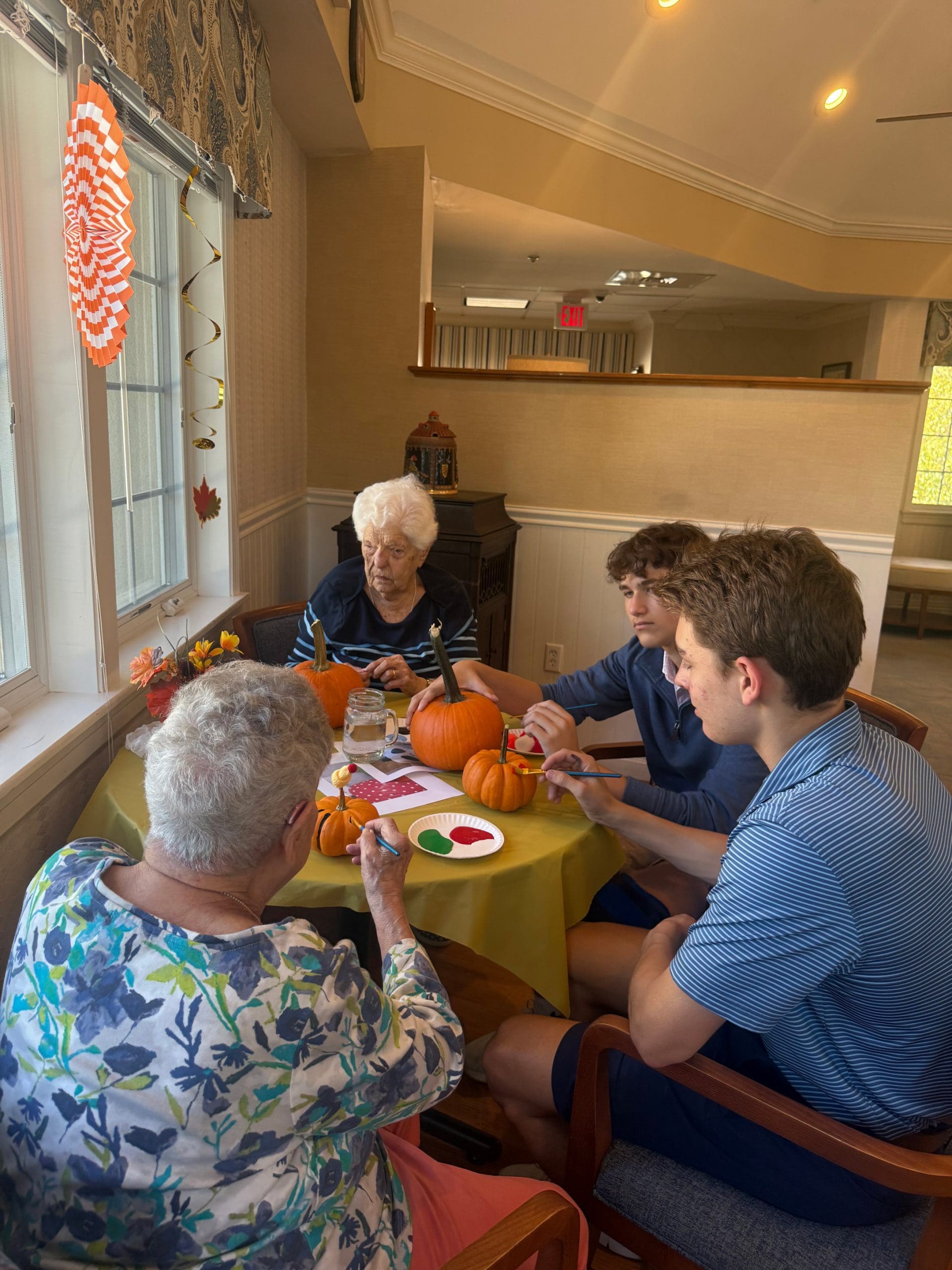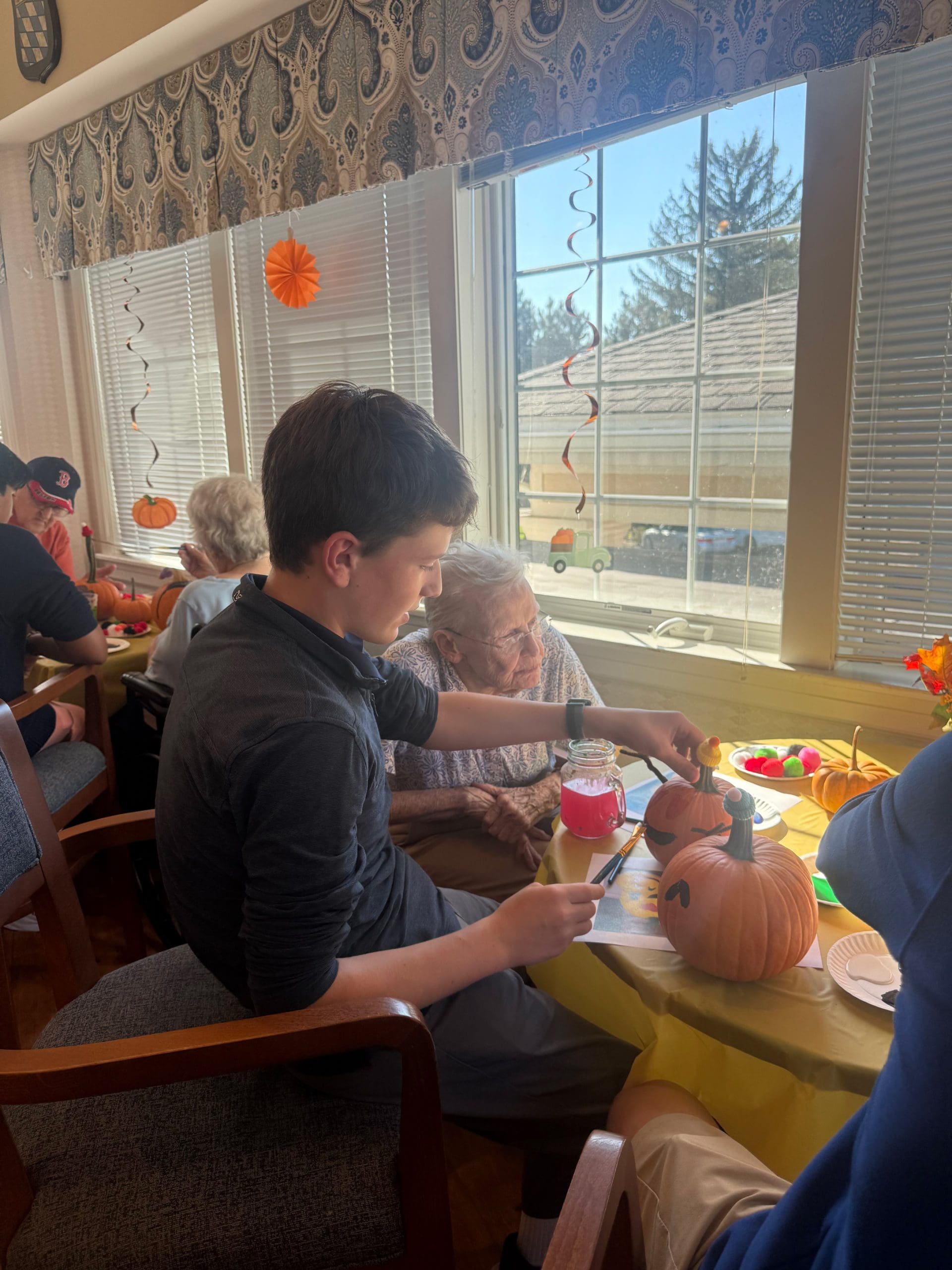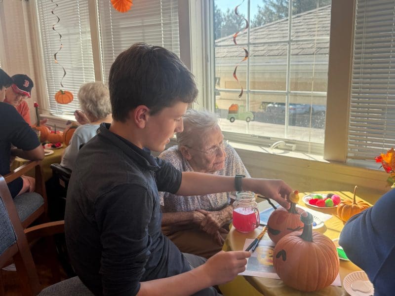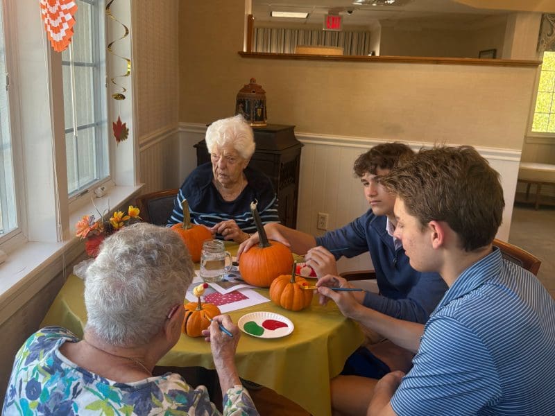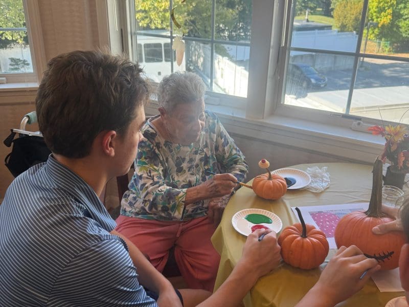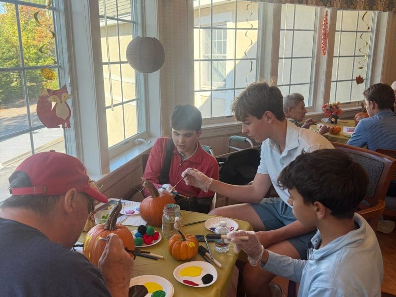Edelweiss Village Assisted Living and Roxbury Latin met again for another joyful autumn visit! Students brought pumpkins, creativity, and great conversation—filling the room with laughter, color, and connection.