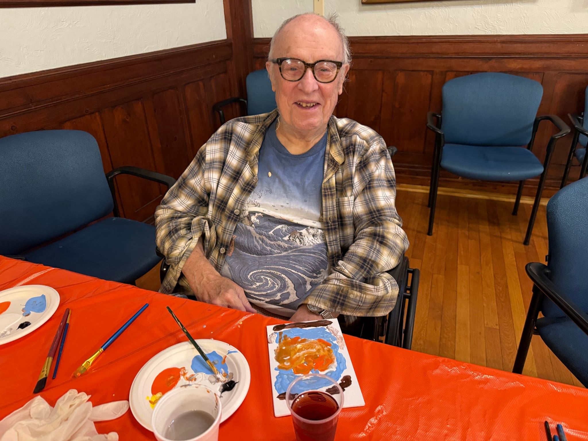 Life Enrichment staff member Ingrid led a fun campus-wide Sip & Paint event where residents from both German Centre and Edelweiss Village followed a guided YouTube painting session. With iced tea in hand and creativity flowing, everyone enjoyed a relaxing and artistic afternoon together!