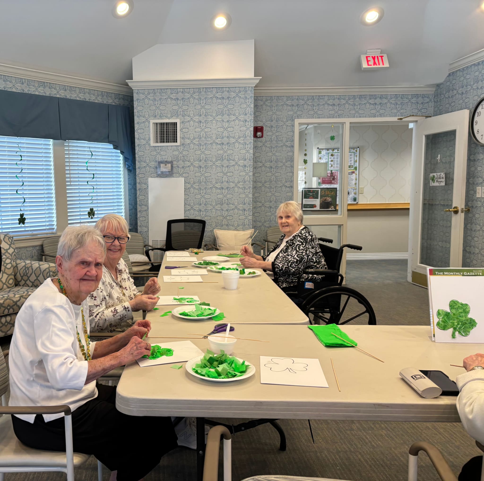 Our Memory Care and Assisted Living residents enjoyed making festive St. Patrick’s Day crafts, sharing laughs, and spending meaningful time together. Programs like these encourage creativity, connection, and plenty of holiday fun.